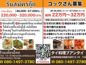 京都府京都市にて新規オープンのタイレストランでシェフ募集!社宅有り、各種保険完備!VISA出ます!